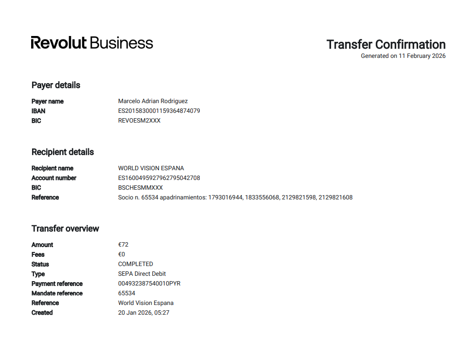 Las cuotas de 18 € de los 4 niños y niñas.